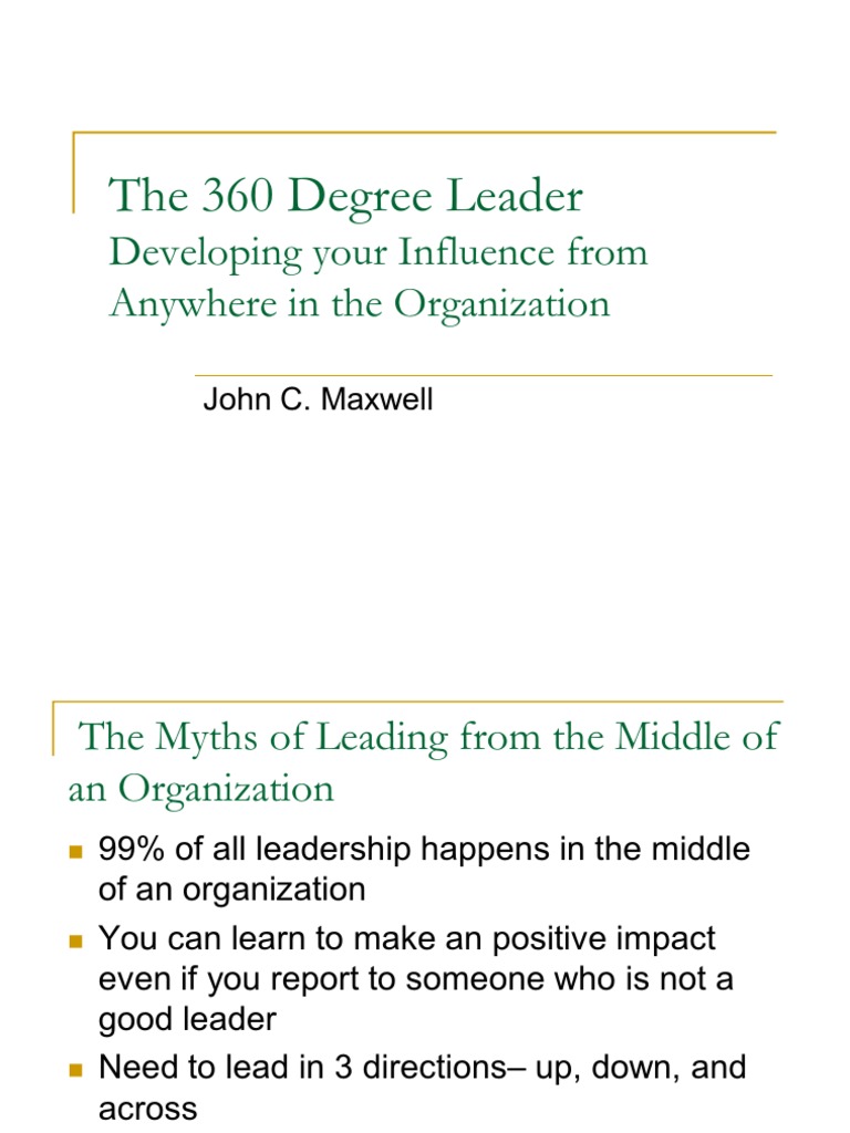 The 360 Degree Leader Developing Your Influence From Anywhere In