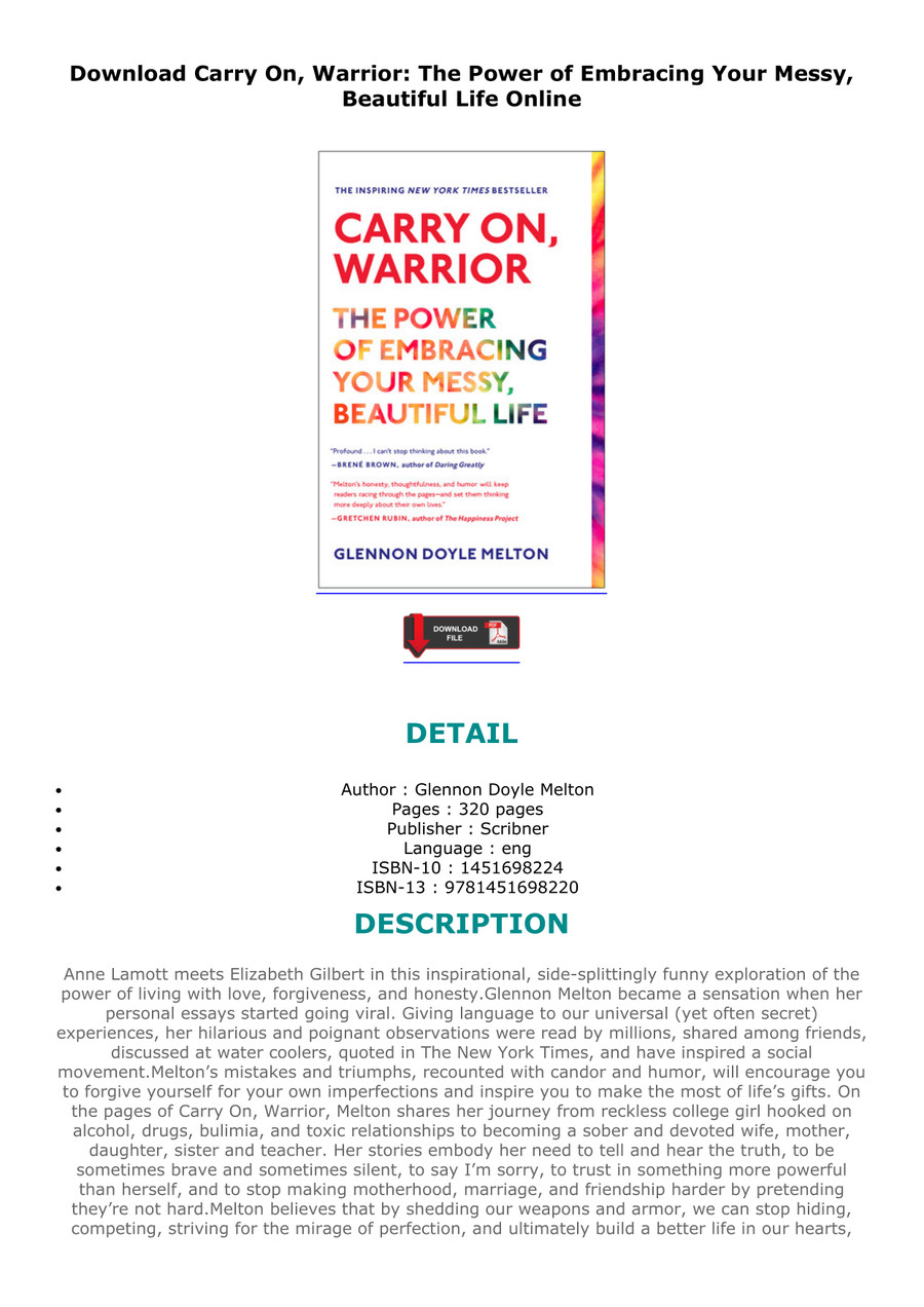 Read online now carry on warrior the power of embracing your messy beautiful life glennon doyle melton ebook pdf at our library. See below for more on carry on. Everyday low prices and free delivery on eligible orders. Check a books in store availability beneath the add to cart button.