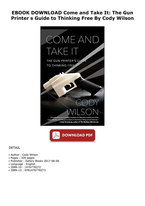 Come And Take It The Gun Printer S Guide To Thinking Free