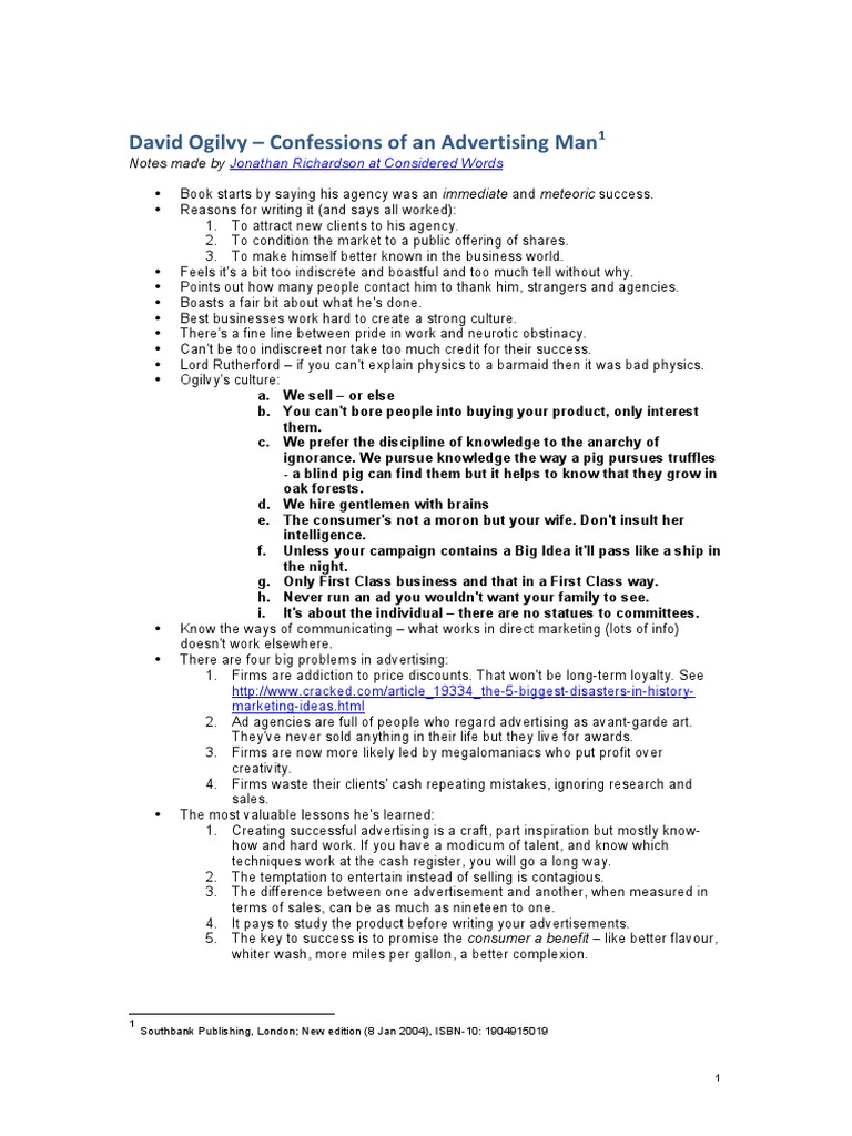 Summary Confessions Of An Advertising Man By David Ogilvy