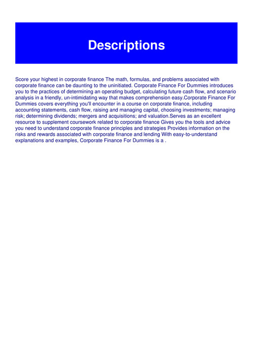 Popular To Favorit Corporate Finance For Dummies By Michael