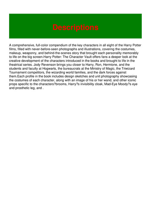 Harry Potter The Character Vault By Jody Revenson 2014 1st 1st