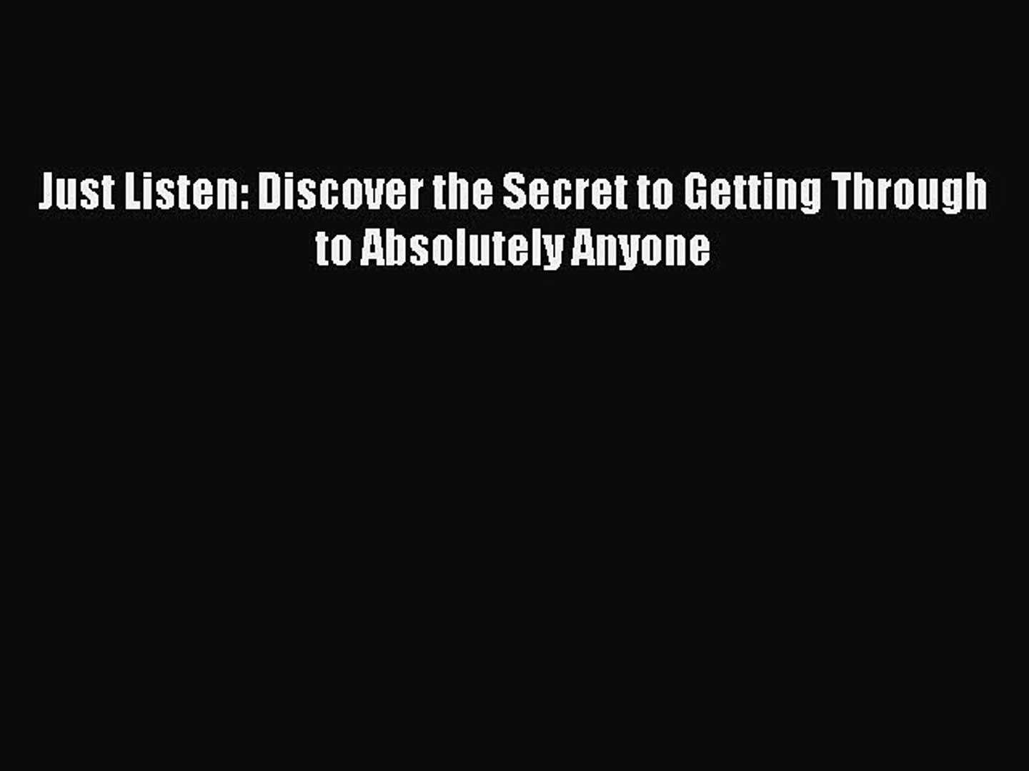 Pdf Epub Just Listen Discover The Secret To Getting Through To