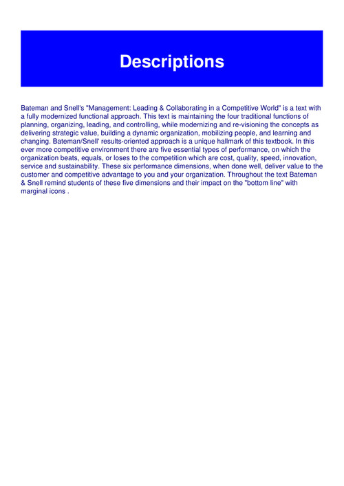 Test Bank For Management Leading Collaborating In A Competitive