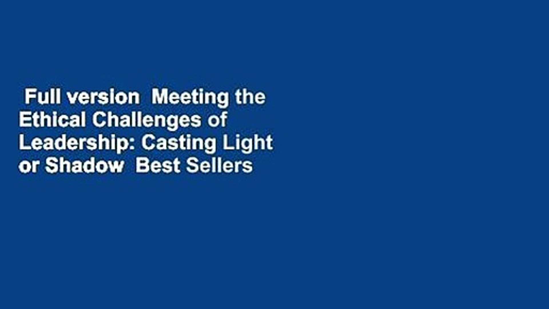 Pdf Meeting The Ethical Challenges Of Leadership Casting Light Or Shadow By Craig E Johnson Geraldine Houghton