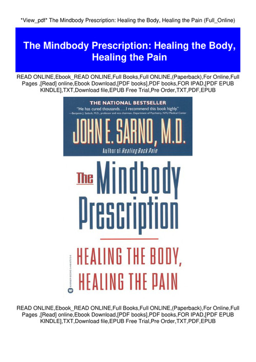 Buy the mindbody prescription first trade edition by sarno john isbn. Back neck and limb pain are rampant and statistics indicate that the epidemic is spreading this book is about that epidemic. Find helpful customer reviews and review ratings for the mindbody prescription. 44 out of 5 stars 1947.