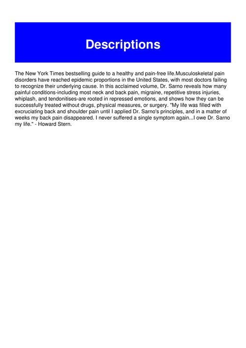 Sarno editorial reviews. In the mindbody prescription dr. Read honest and unbiased product reviews from our users. Sarnos 1998 book the mindbody prescription.