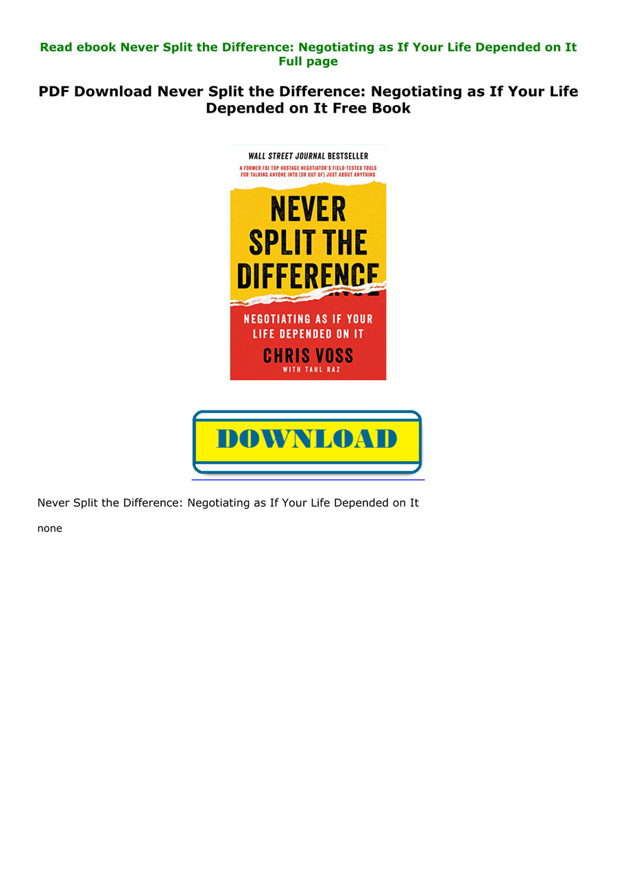 Pdf Download Never Split The Difference Negotiating As If Your