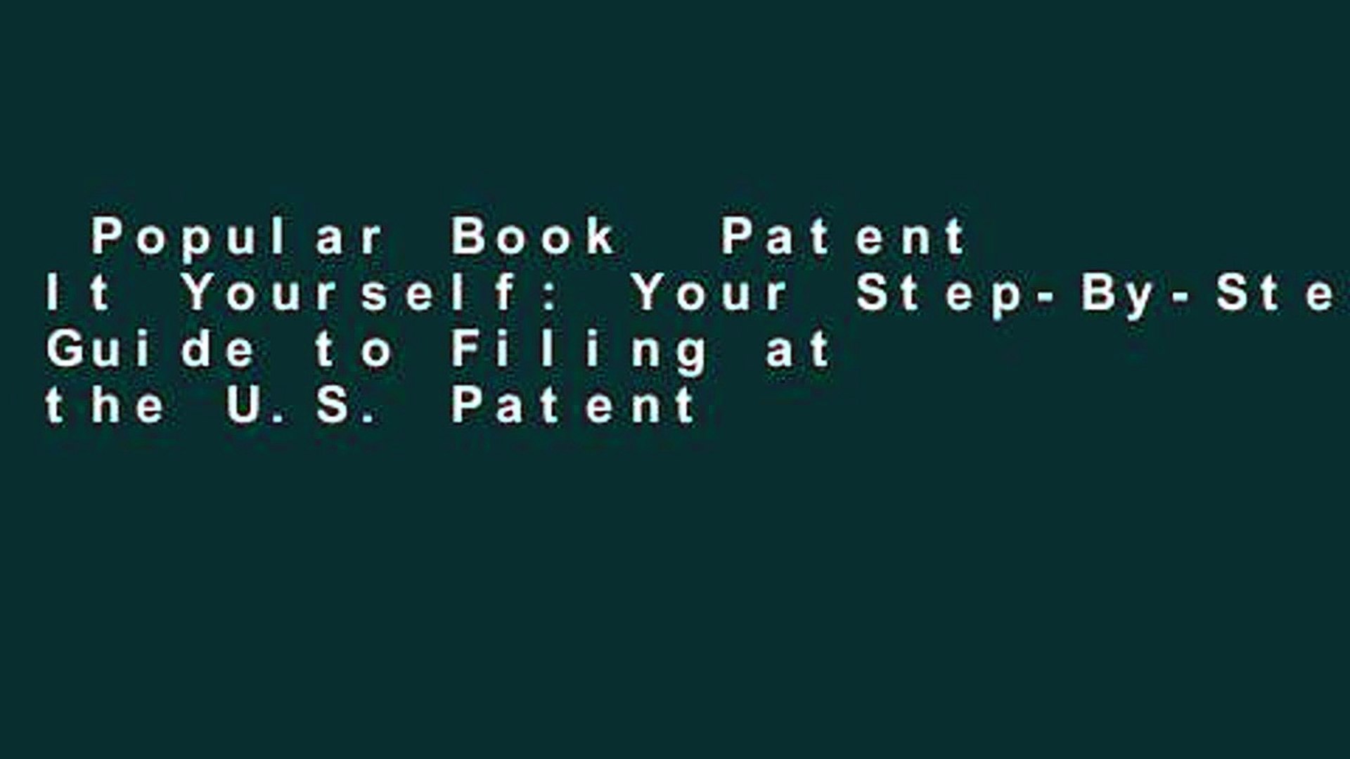 Favorite Book Patent It Yourself Your Step By Step Guide To Filing At The U S Patent Office Video Dailymotion