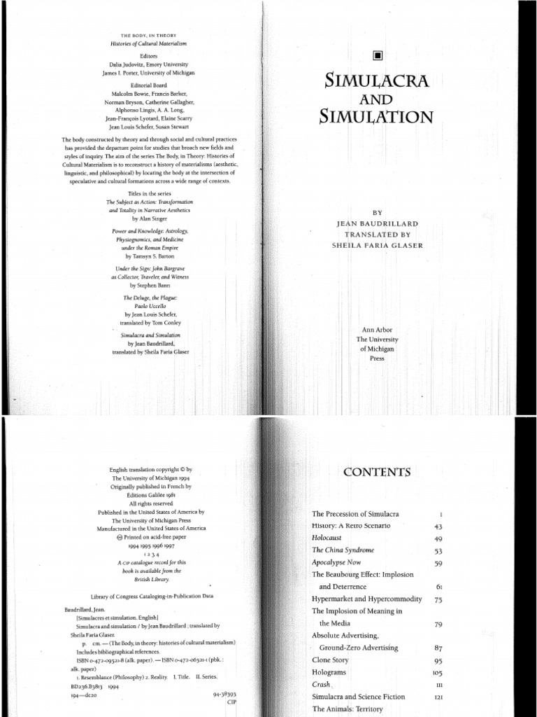 Simulacra And Simulation Jean Baudrillard Simulacros E