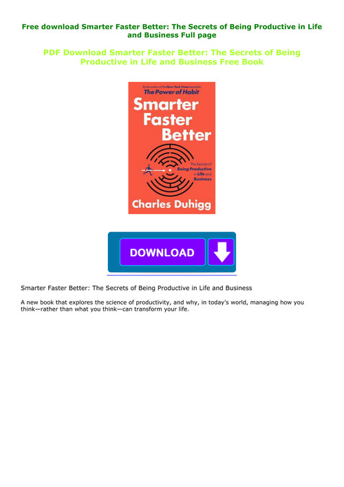 Download Smarter Faster Better The Secrets Of Being Productive In