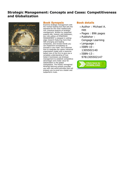 Strategic Management Concepts Competitiveness And Globalization