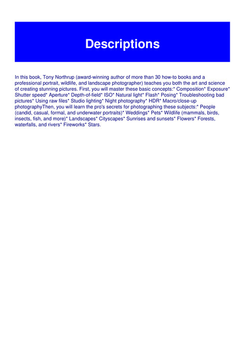 Pdf Tony Northrup S Dslr Book How To Create Stunning Digital Photo