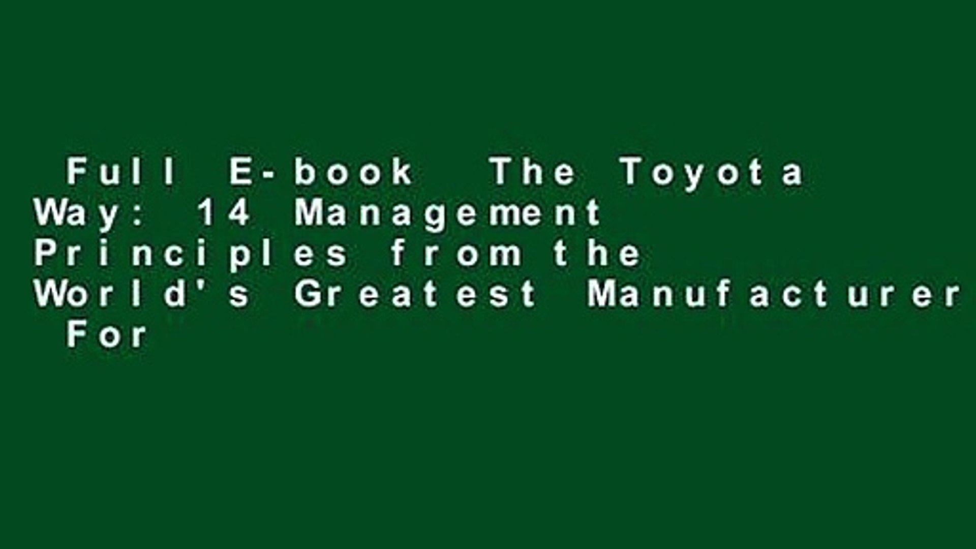Read Epub The Toyota Way 14 Management Principles From The