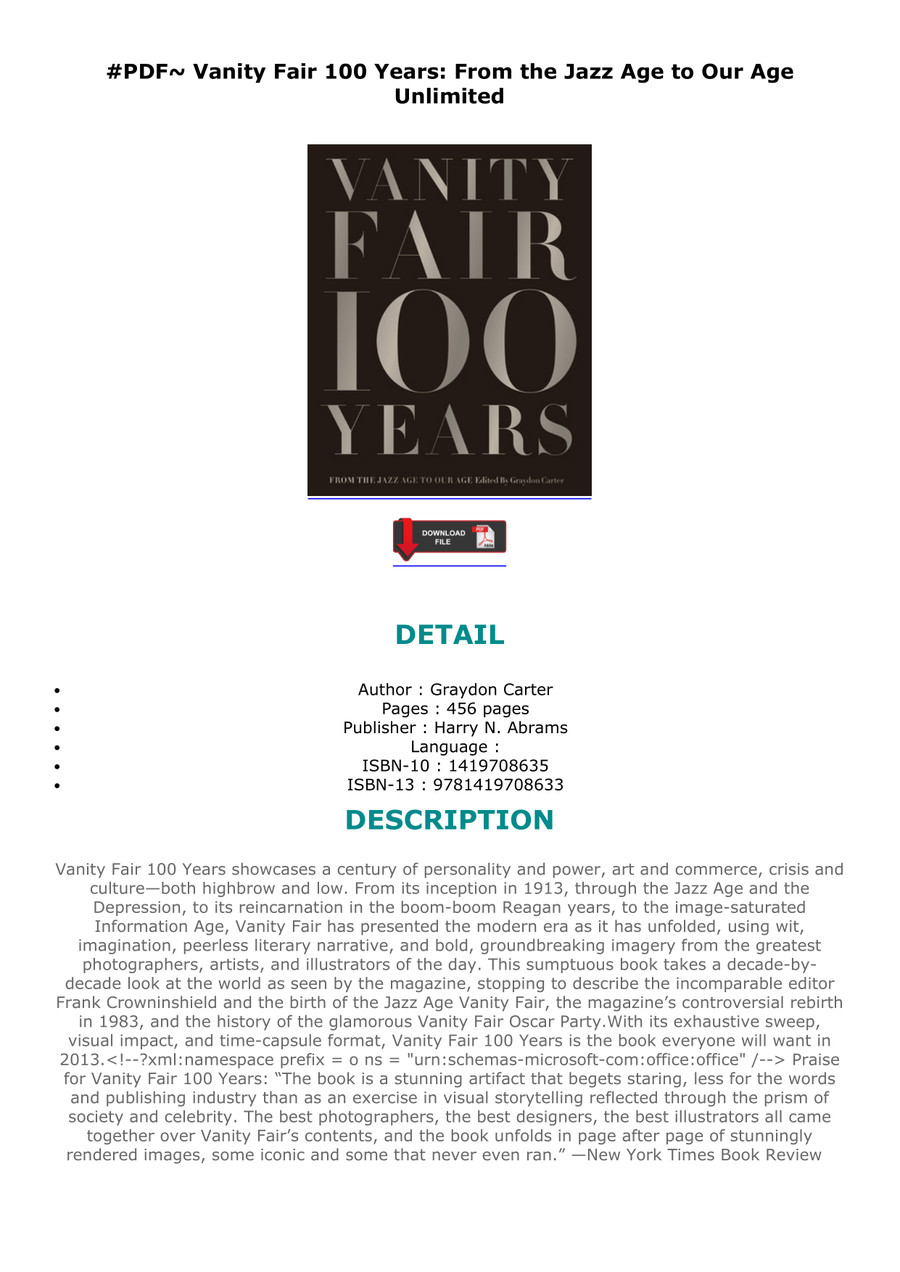 Vanity Fair 100 Years From The Jazz Age To Our Age By Graydon