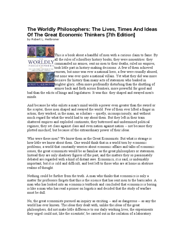 The Worldly Philosophers Economics Free 30 Day Trial Scribd