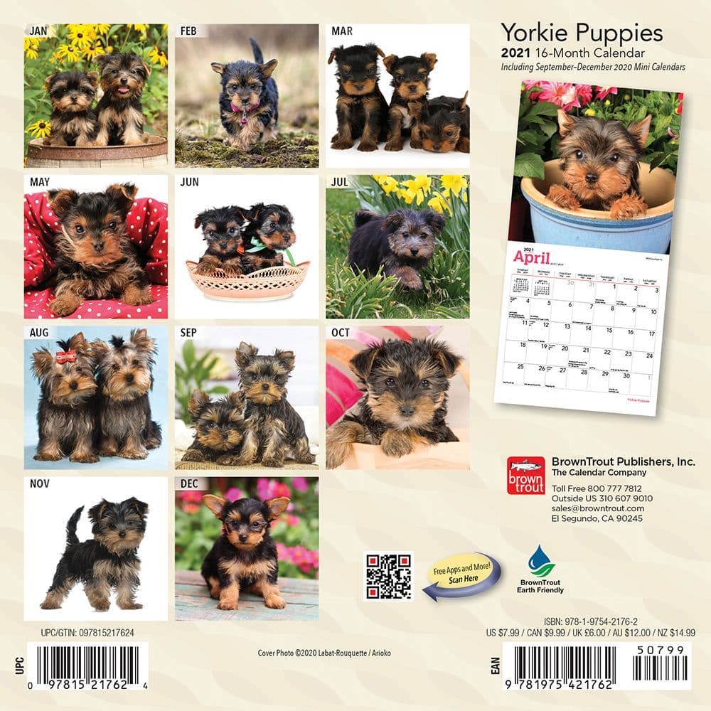 Yorkie Puppies Calendar 2020 16 Month Calendar By Not A Book